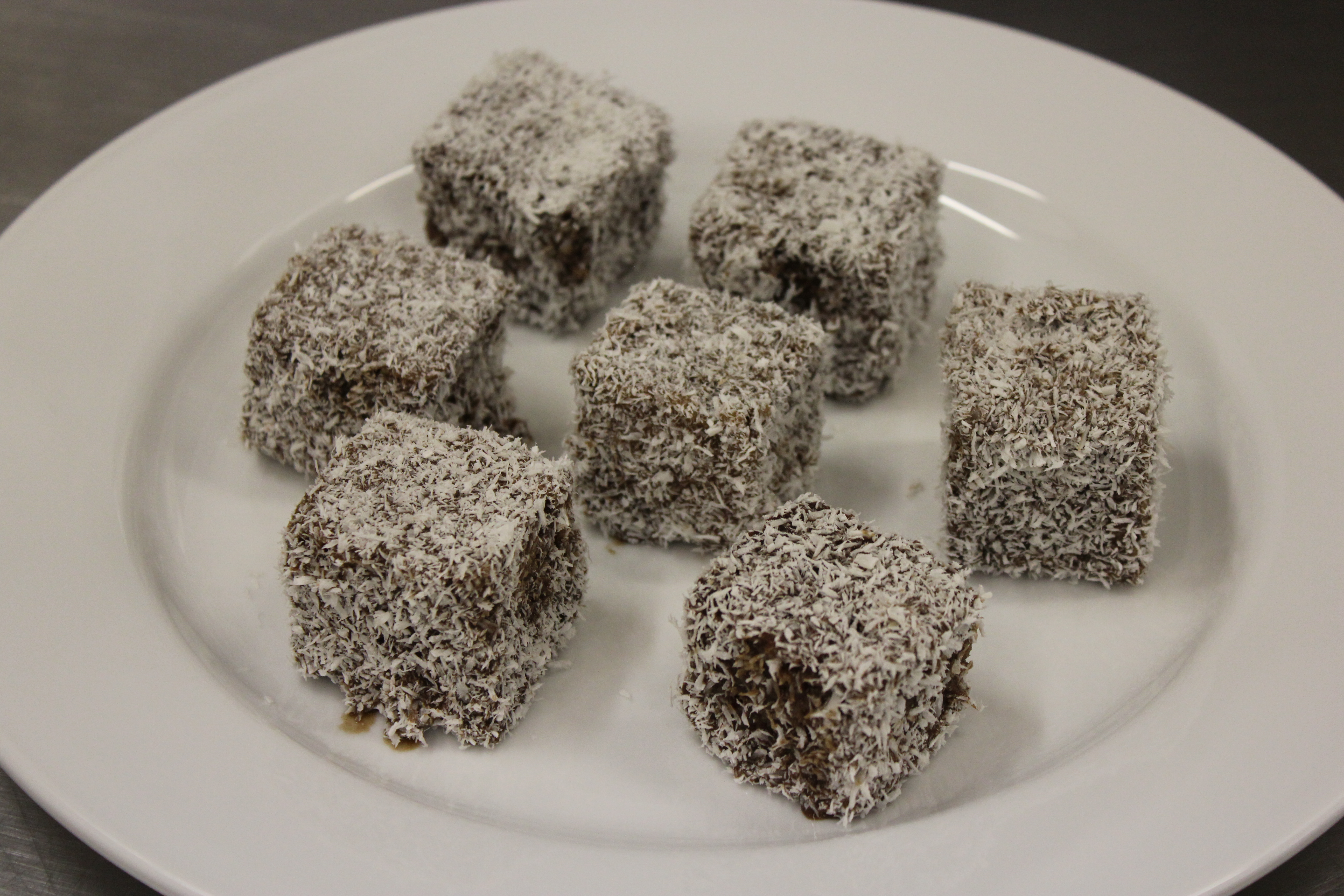 Legend has it that these little cakes were named after Charles Baillie, 2nd Baron Lamington, who, by accident, dropped a piece of cake into a bowl of gravy, then threw it and it haphazardly landed in a bowl of coconut. Chocolate is better than gravy, I think, but who knows.